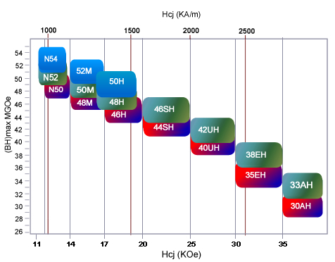 勝磁磁材最高牌號可達N54、52M、50H、48SH、42UH 38EH、33AH等,引領(lǐng)行業(yè)先鋒。