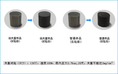 PCT試驗:130℃,濕度100%,蒸汽壓力2.7bar,20天,平均失重<2 mg/cm2。